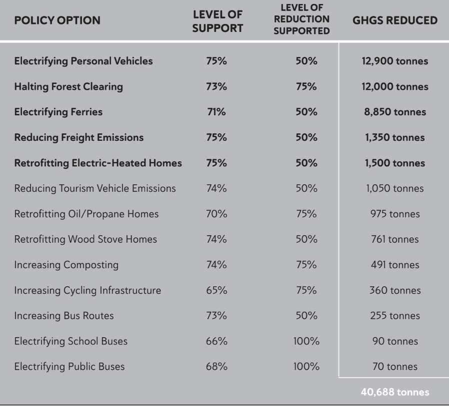 The CAP Steering Committee used the United Nations recommendation to set a goal of reducing GHG emissions by 50 percent by 2030. They worked with a number of different island organizations including local non-profit Transition Salt Spring, and local government officials, to identify mitigation and adaptation strategies. Then they collaborated with Ethelo and eDemocracy to plan a public engagement to hear community perspectives that would inform the plan.