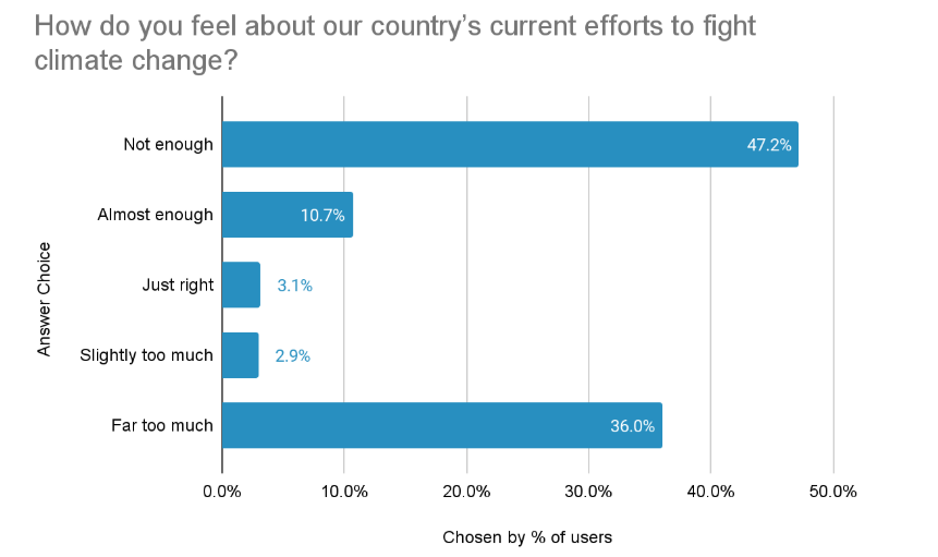 “I’m glad this survey exists, as it’s important for Canadian citizens and organizations to give their feedback. I just hope the government tries new ideas to curtail emissions and promote Canadian innovation with the release of the new net-zero targets.”