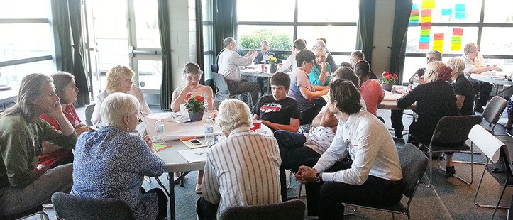 On June 25, 2014, Ethelo’s team facilitated a focus group of nearly 50 community leaders and members, including service recipients and recognized “movers and shakers,” to identify key issues affecting the community. Using a world café-style approach, participants discussed and prioritized actions for collaboration. Following the in-person meeting, Ethelo consolidated the results and worked with the MLA’s office to draft background information, organizing 21 proposed initiatives into eight focus areas.